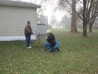 The first post goes in up at my Dad and Mom's place in Packwaukee WI. Randy and my dad pound the first post in to see how the ground will be...as it was pretty packed down.